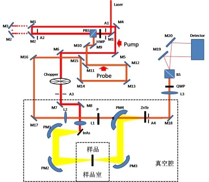 本系统是利用飞秒光激发半导体砷化铟(InAs)从而产生太赫兹波源的方法。由于利用