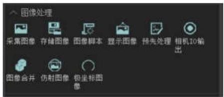 其中图像处理功能包含采集图像、 存储图像、图像脚本、显示图像、 预先处理、相机10输出、图像 合并、仿射图像、极坐标图像等。