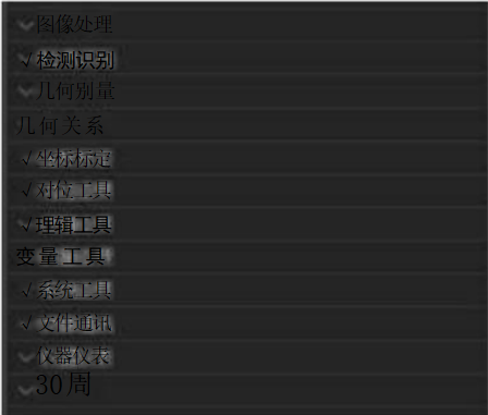 几何测量、几何关系、对位工具、逻辑工具、变量工具、系统工具、文件通讯、仪器仪表、3D检测。