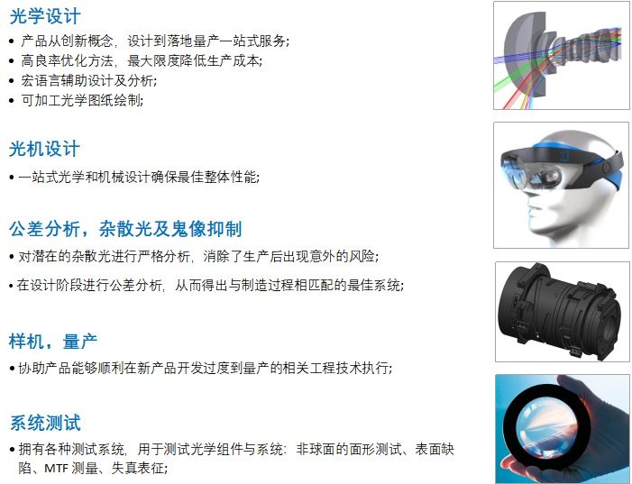 利用我们在成像光学和照明光学领域的专业知识,我们可以在产品开发过程的每个阶段为您提供优质的服务,包括从产品概念设计到产品批量生产的实施。